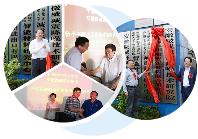 公司與合肥工業大學聯合成立了“安徽微威集團合肥工業大學減震降噪研究中心”,與重慶大學聯合成立了“安徽微威膠件集團公司重慶大學光電工程學院智能材料研究中心”,